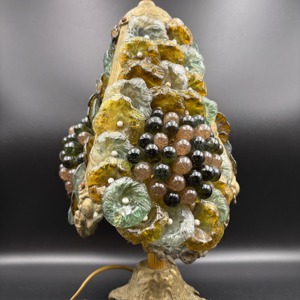 05035 -Vintage Tischlampe im floralen Design – mit Glasblüten & Trauben –