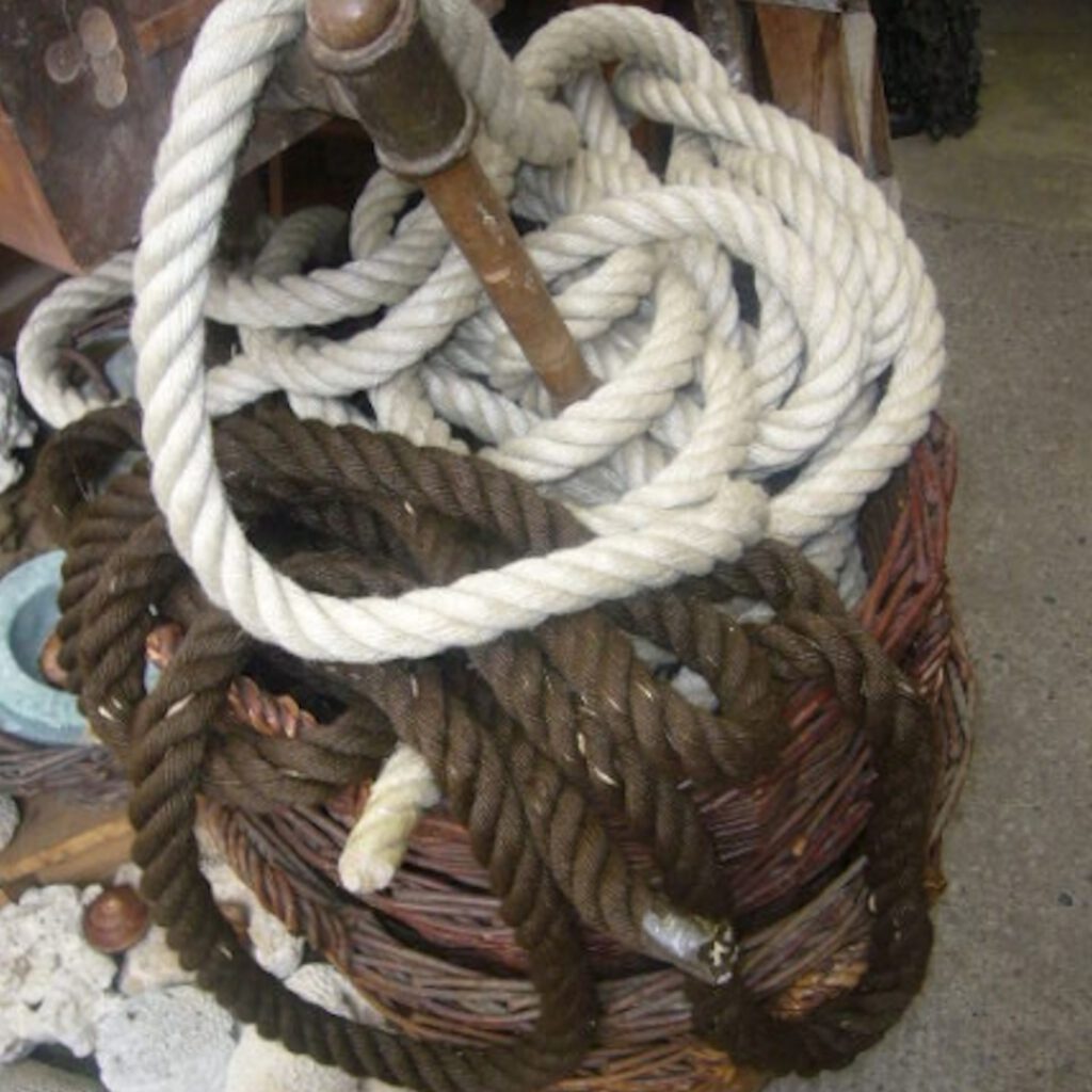 Im Fundus befinden sich Schiffstaue in unterschiedlichen Farben, Stärken und Längen.