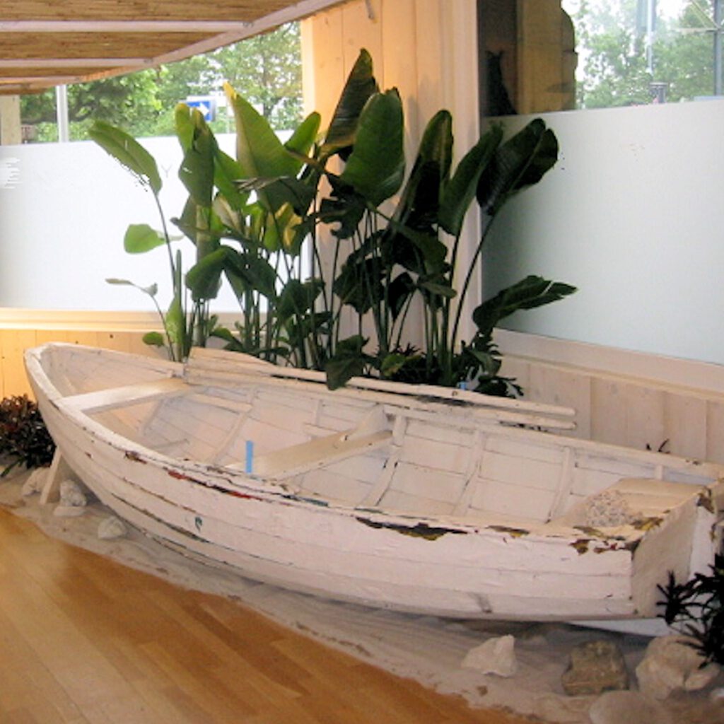 Im Fundus befindet sich ein altes Ruderboot. Aufgrund des Zustandes kann es nur zu Dekorationszwecken verwendet werden. Wir verfügen ebenfalls über die dazugehörigen Paddel.