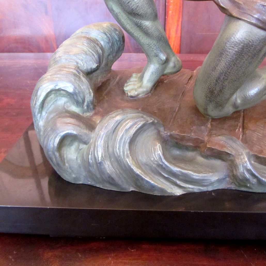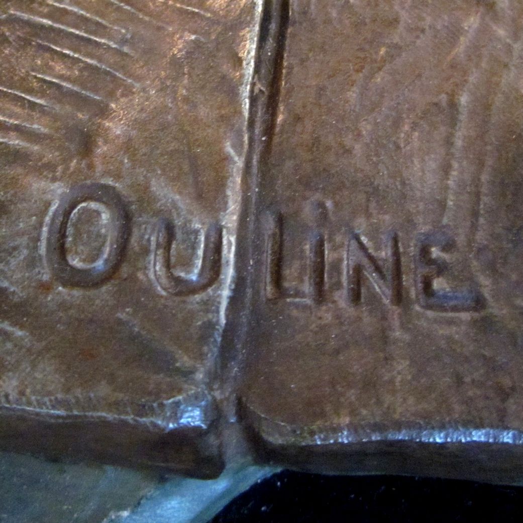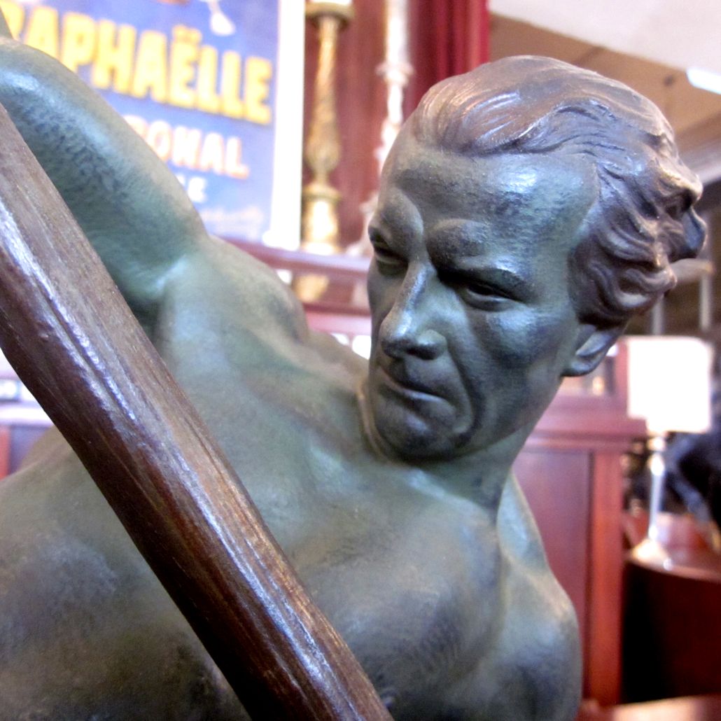Diese fein gearbeitete Art Deco Skulptur aus den 20er Jahren oder auch Kaminfigur stammt von dem in Belgien geborenen Bildhauer Alexandre Ouline. Sie wird tituliert als „der Ruderer“ und stammt aus Frankreich. Die Art Deco Bronze ist signiert mit Ouline, Der Sockel ist aus schwarzem Marmor gearbeitet.
