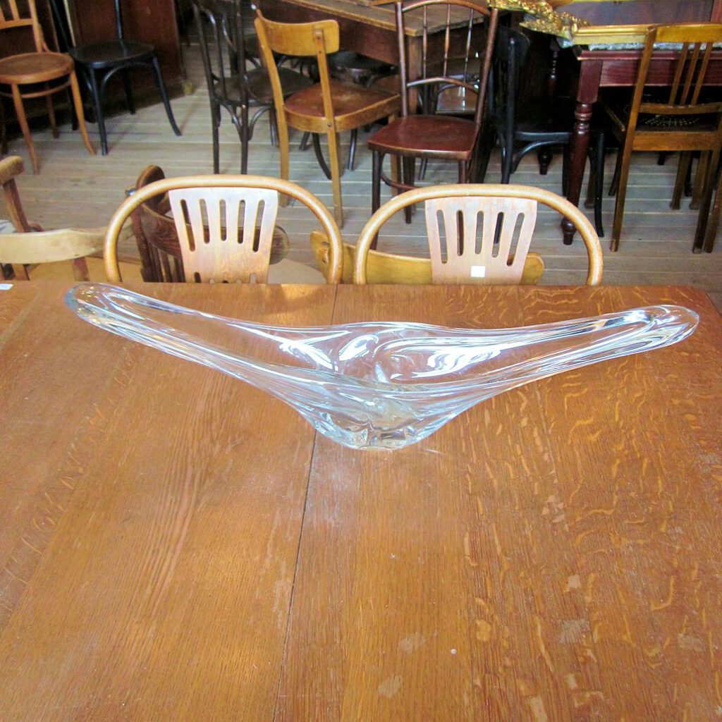 Dies ist eine dekorative Glasschale aus massivem Guss. Sie eignet sich besonders als Wohnaccessoire auf einem großen Tisch oder Kaminsims.