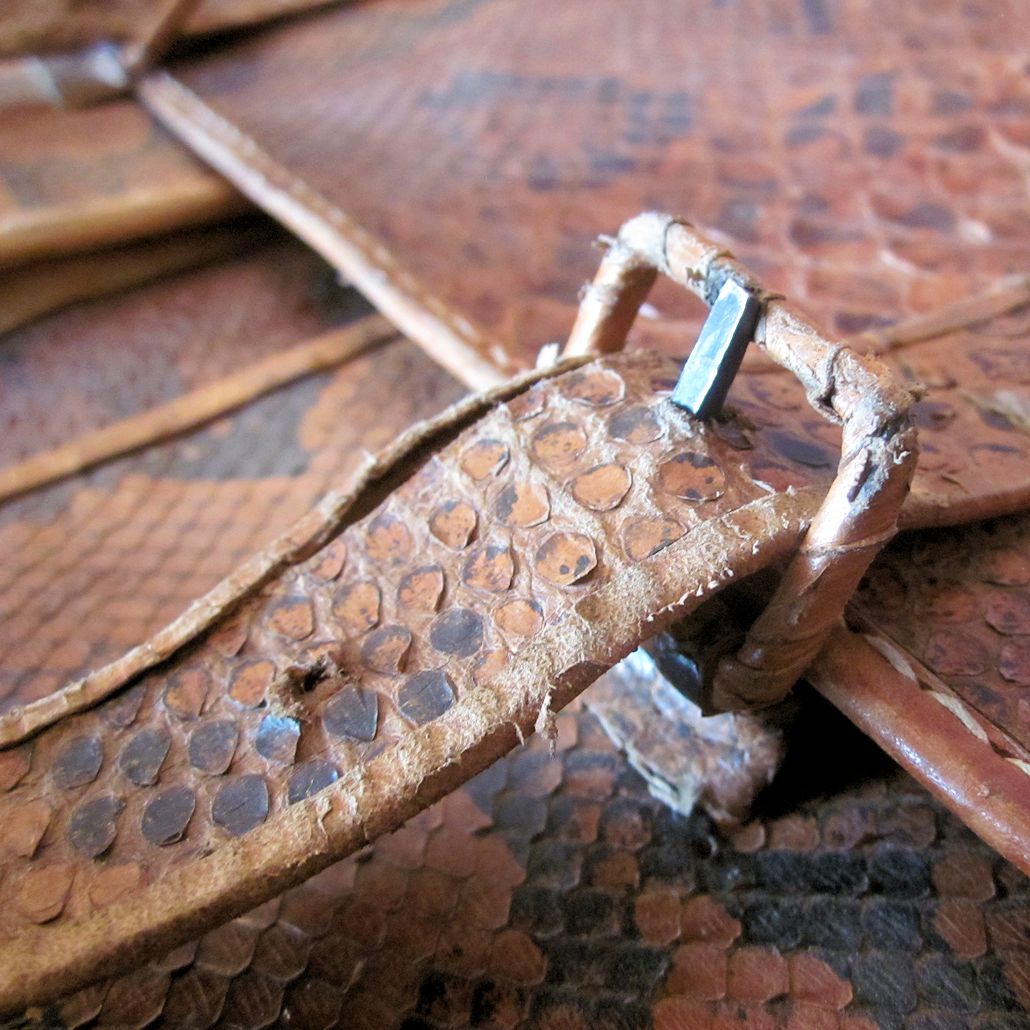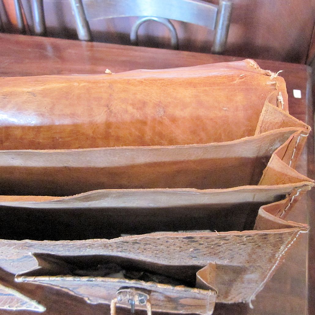Diese elegante Aktentasche wurde aus Schlangenleder gefertigt. Sie verfügt über 3 separate Innenfächer und 2 zusätzliche kleine Taschen auf der Vorderseite.