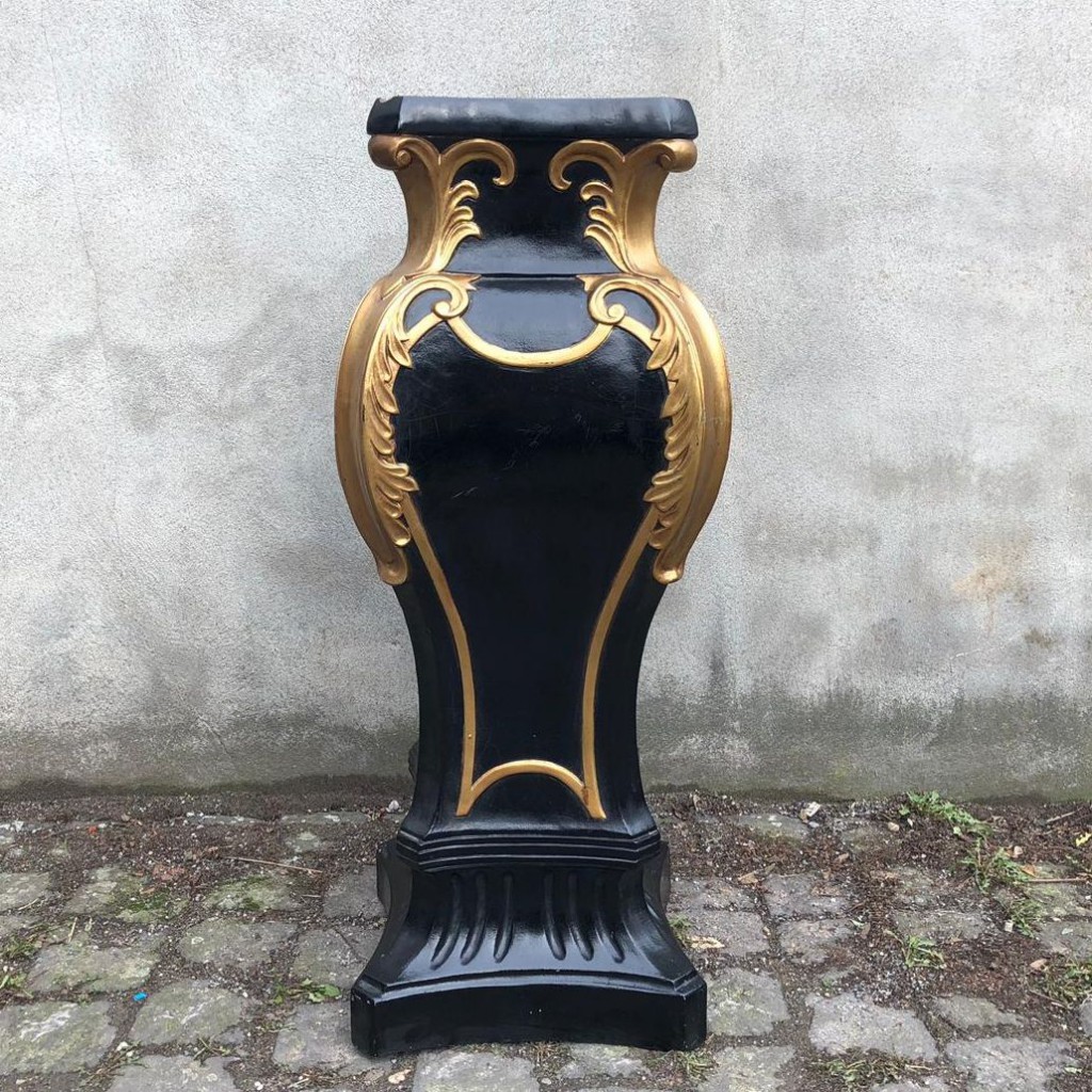 Die schwarze Säule ist mit goldenen Ornamenten versehen und eignet sich wunderbar für Dekorationen und verschiedene Verleihthemen.