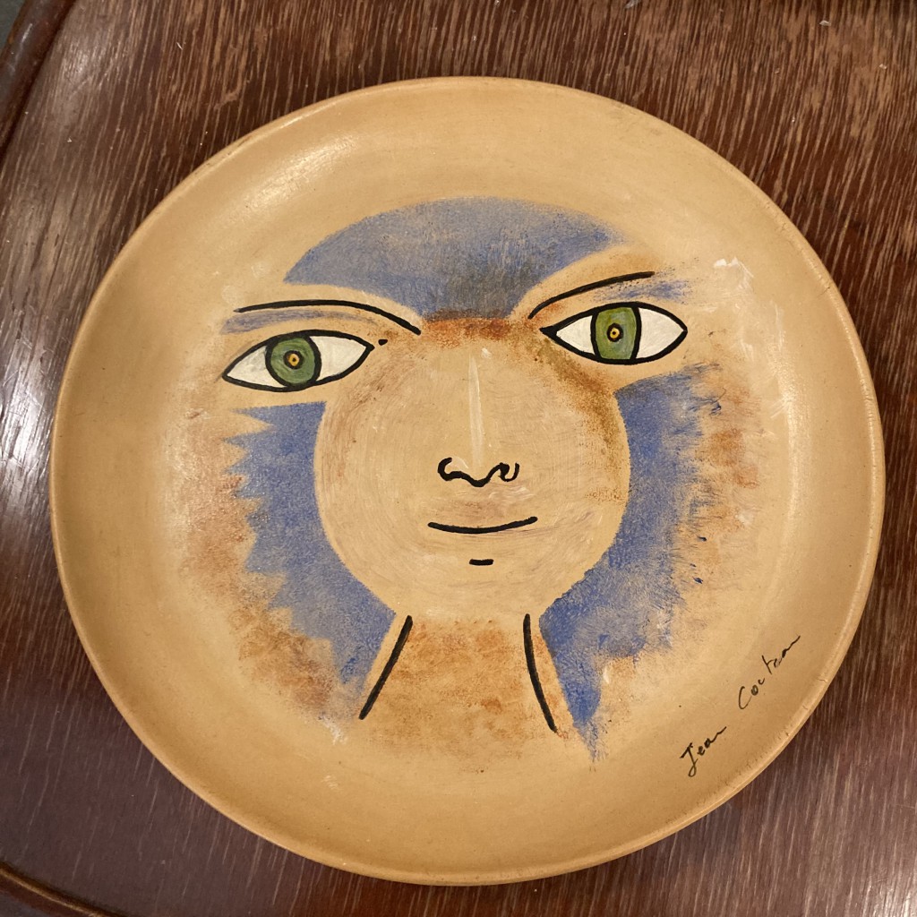 Terracotta-Teller von Jean Cocteau (1889-1963) ‚Les Yeux Verts‘ von 1958. Handsigniert „Jean Cocteau“.