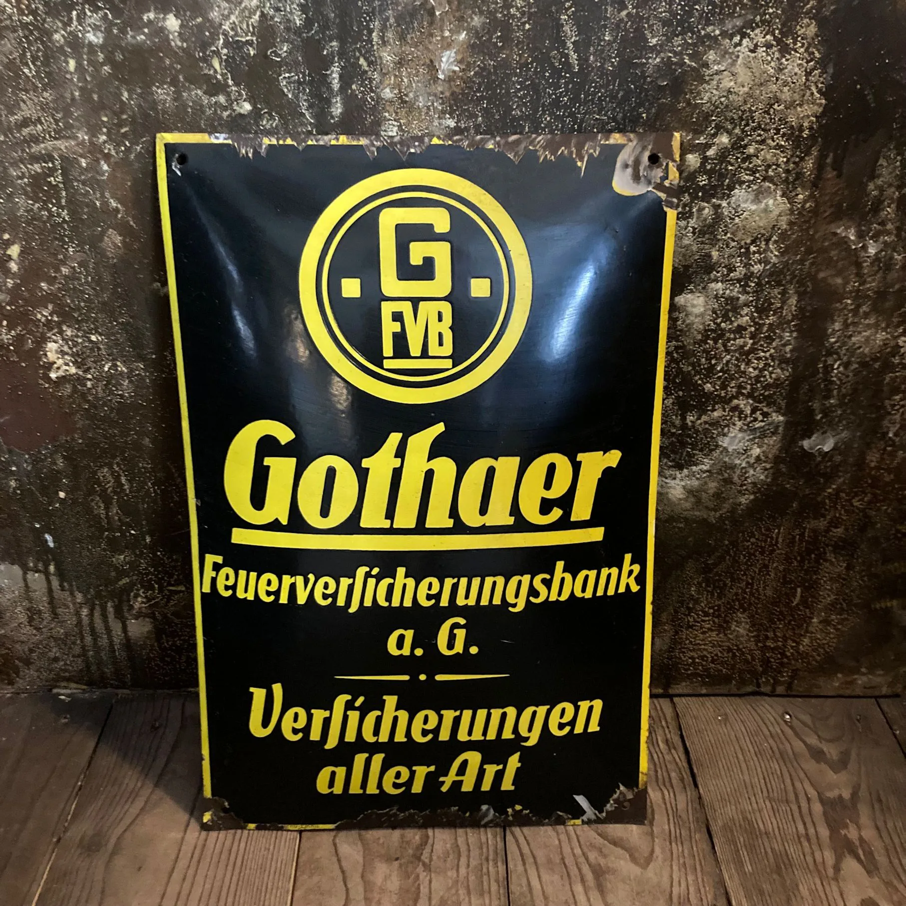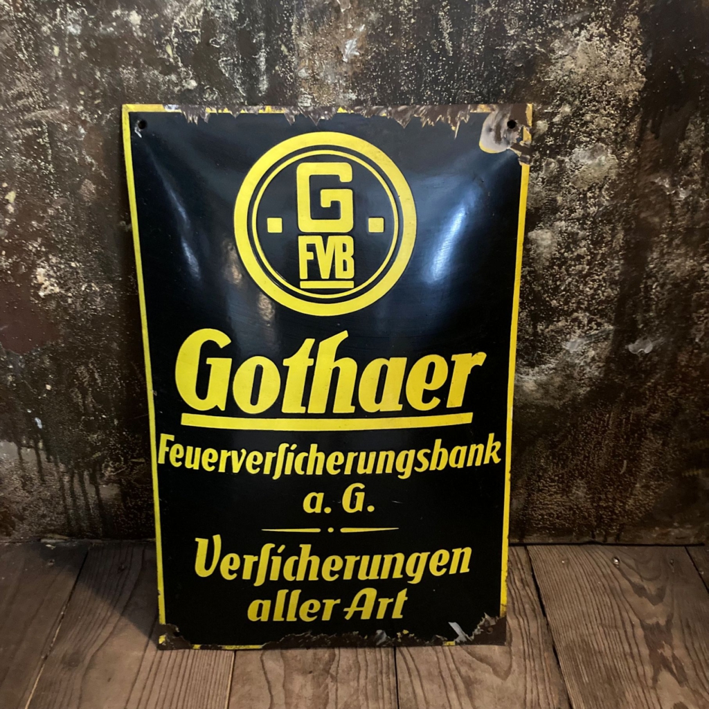 Emaille Werbeschild Gothaer, Feuerversicherungsbank , ca. 1935 das Schild weist altersgemäße sichtbare Gebrauchsspuren auf
