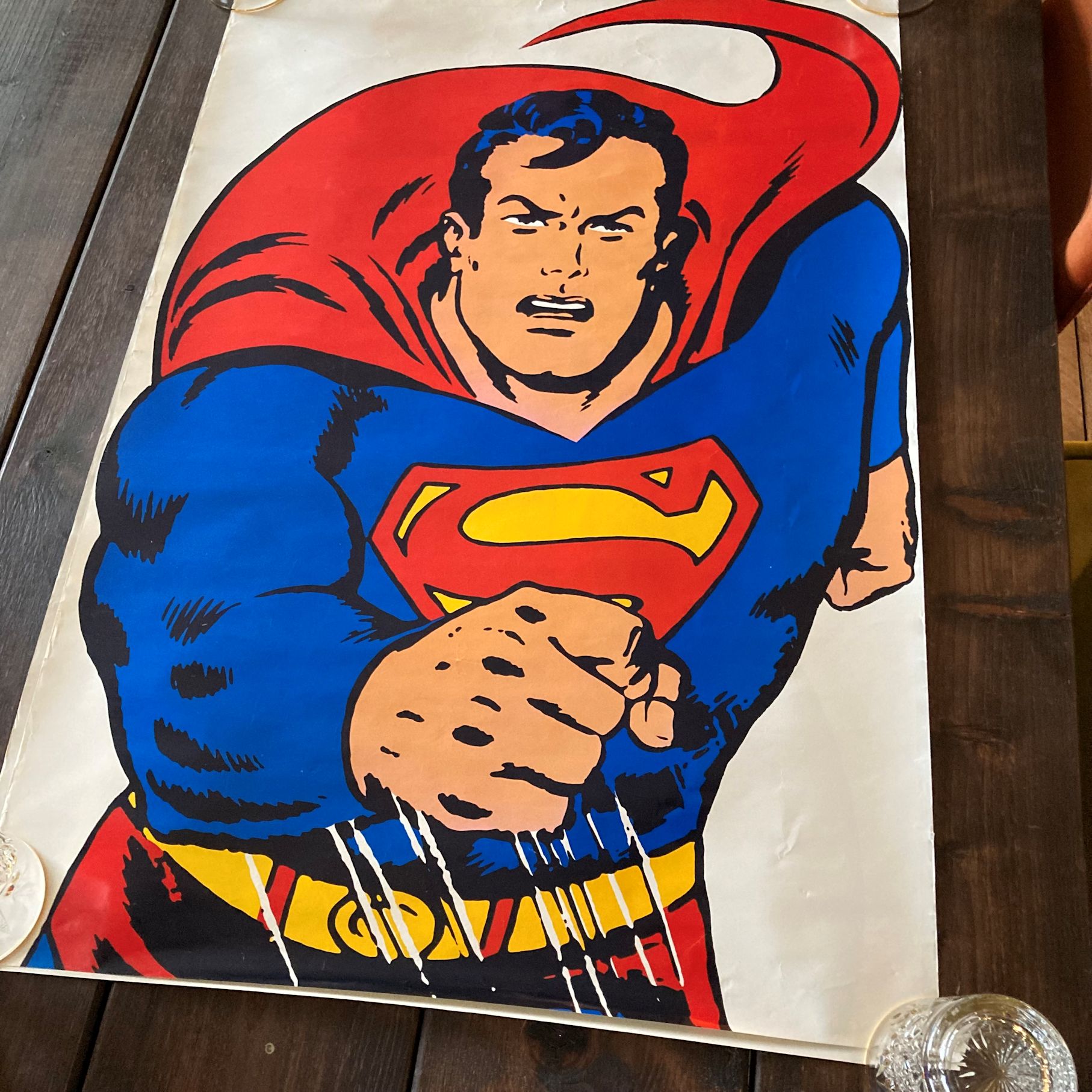 Das große Superman Plakat ist 2-teilig und hat ca. Türformat (B61 x H176 cm)