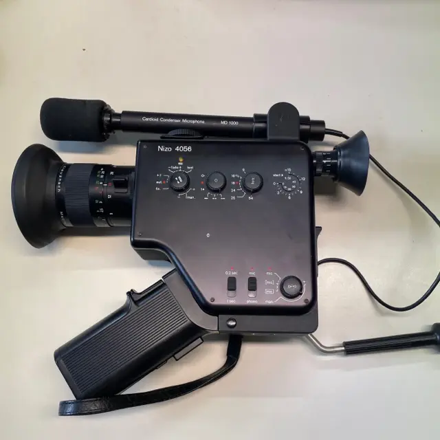 Video-Kamera von der Firma BRAUN / Nizo 4056. Cardioid Condender Micro MD 1000.