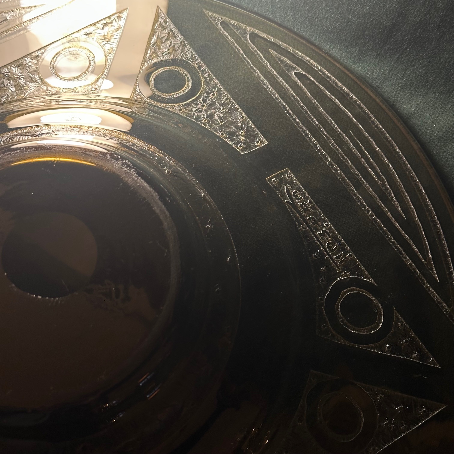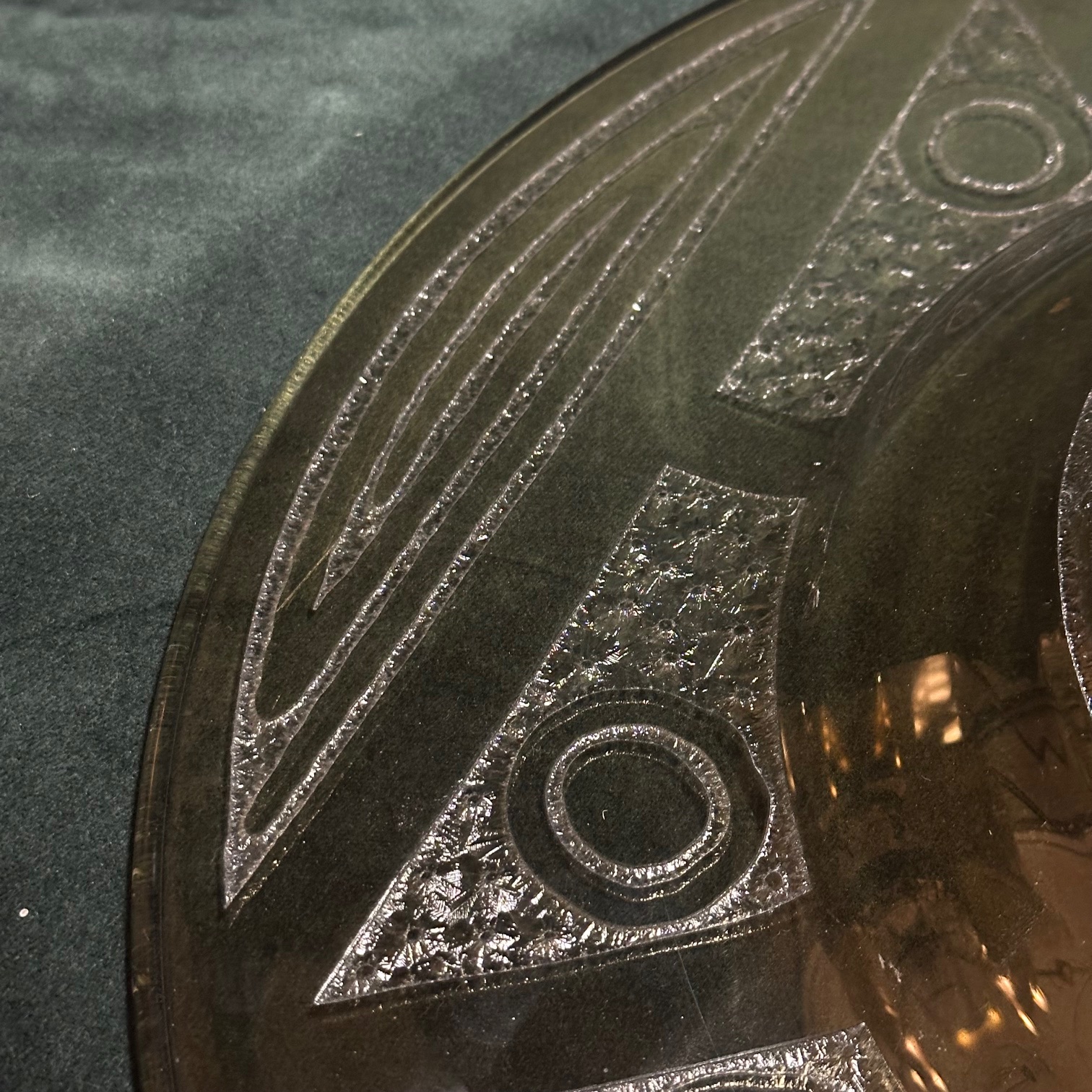 Art Deco Glasschale aus den 1920er Jahren mit geometrischem Muster und Signatur von „Schneider“ (Charles Schneider).