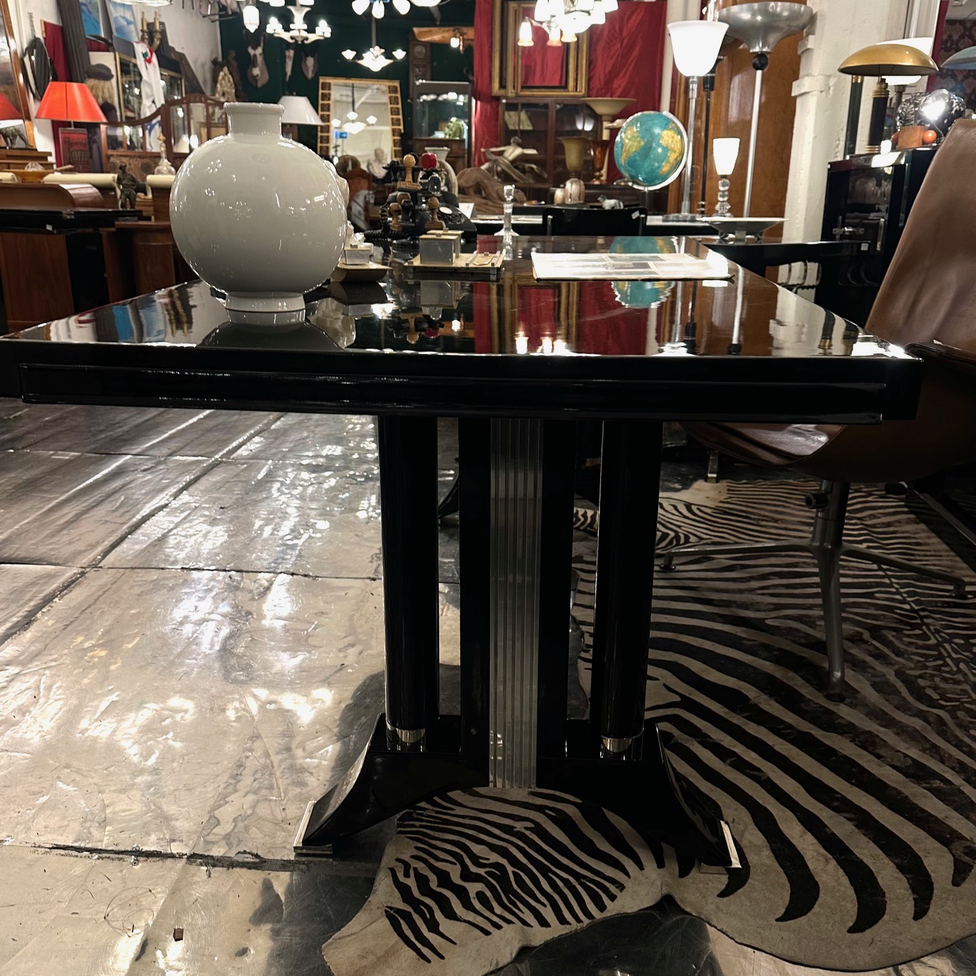 Ob als Esstisch für festliche Anlässe oder als großzügiger Schreibtisch für Ihr Home Office – dieser Tisch passt sich Ihrem Raum und Ihrer Nutzung an. Die edlen Holzoberflächen und die kunstvollen Details im Art Deco-Stil machen ihn zu einem echten Blickfang. Ein perfektes Beispiel für die Verschmelzung von Funktion und Stil, das sowohl in klassischen als auch modernen Interieurs glänzt.