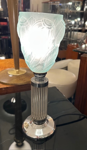 Schöne Art Deco Tischleuchte, mit Glasstäben aus den 1920er Jahren. Die Lampe ist neu verkabelt.