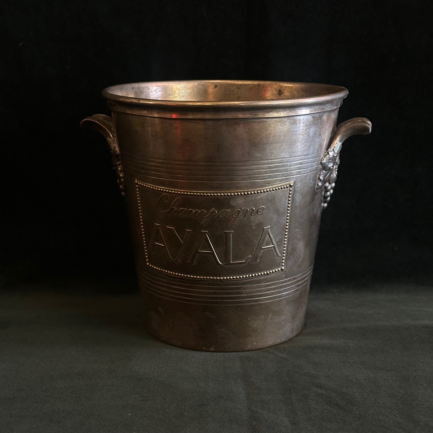 Eleganter Champagner-, Sekt- oder Weinkühler der renommierten Marke Ayala, versilbert und datierend aus den 1930er Jahren. Mit seinem zeitlosen Art-Déco-Design und der hochwertigen Verarbeitung verkörpert dieses Sammlerstück stilvolle Tischkultur vergangener Jahrzehnte. Ideal zum stilvollen Kühlen edler Tropfen – ein Highlight für Liebhaber historischer Tafelkultur und Vintage-Accessoires.