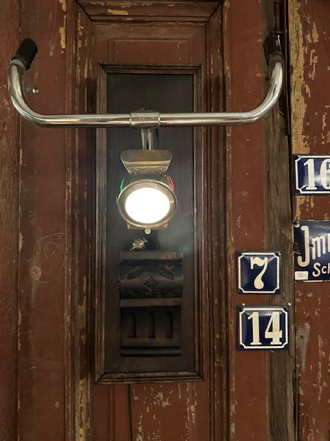 Alte Fahrradleuchte, produziert in England, aus den 1894-1910er Jahren, aus Messing. Die Fahrradleuchte wurde im Rahmen der Sendung „Bares für Rares Händlerstücke“ zu einer Wandleuchte umgebaut (siehe anhängende Fotos).
