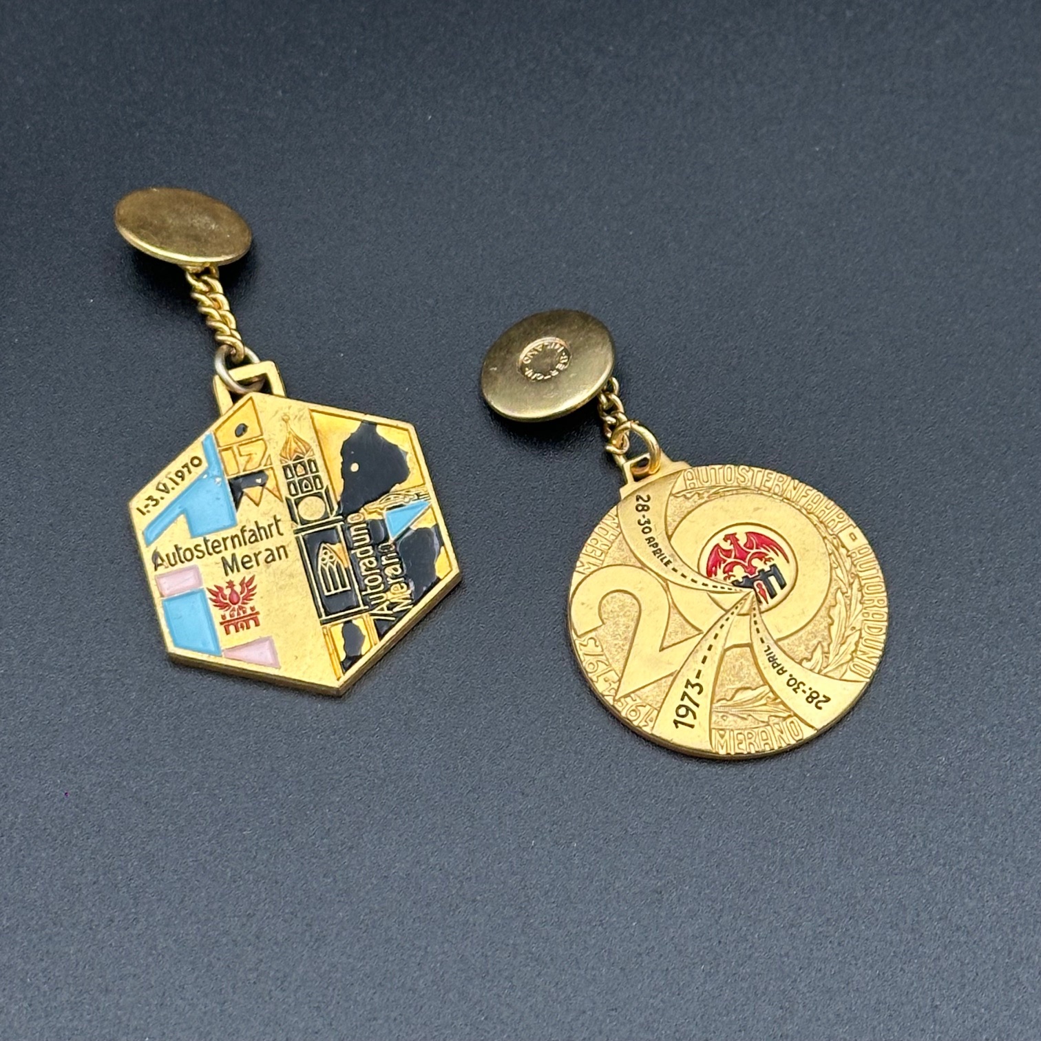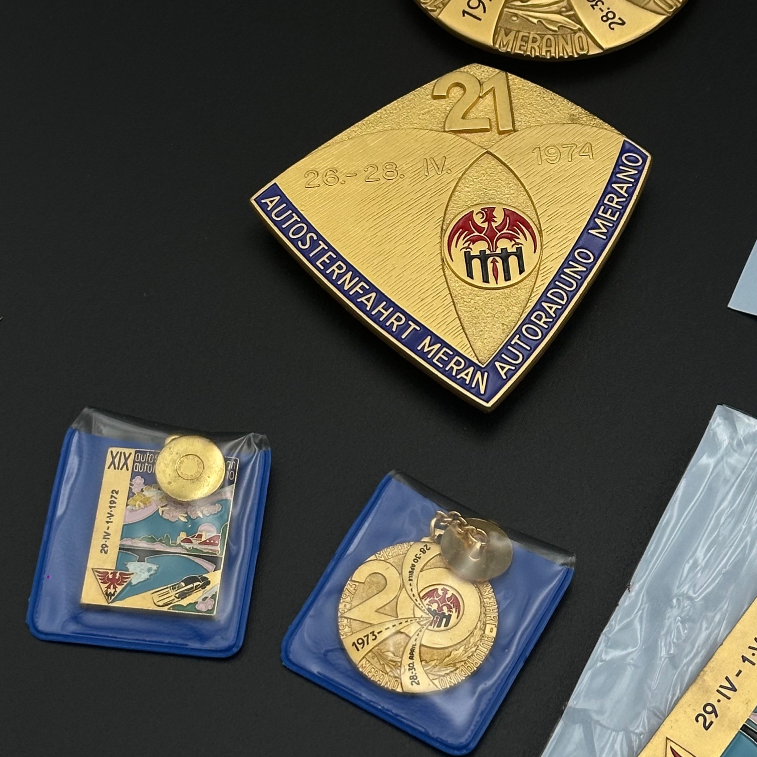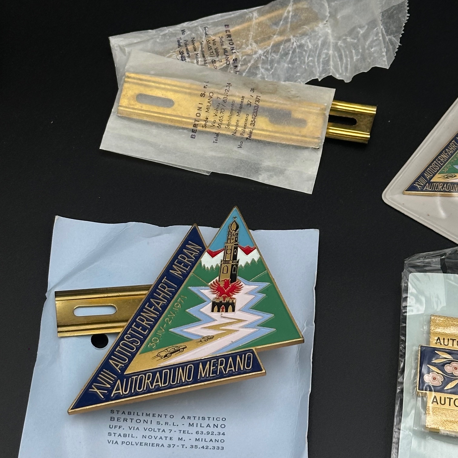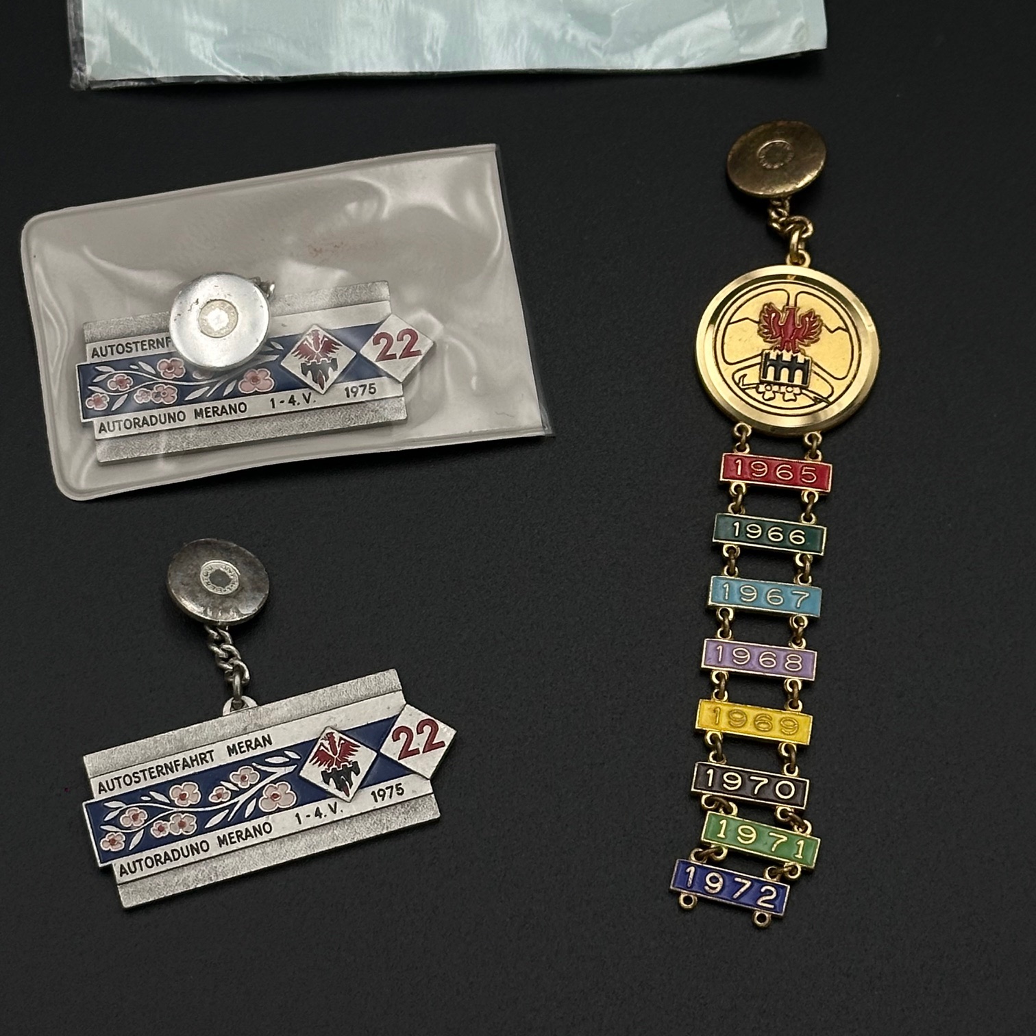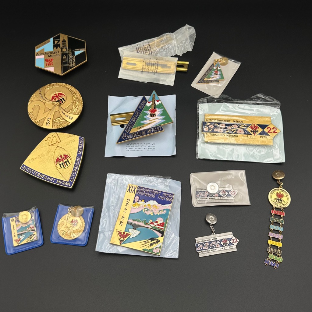 Sammlung von 16 originalen ADAC-Autoplaketten aus den Jahren 1965 bis 1975. Gefertigt vom renommierten Hersteller Bertoni, Mailand, aus massivem Messing. Alle Plaketten befinden sich in gutem, sammlerwürdigem Zustand mit authentischer Patina.