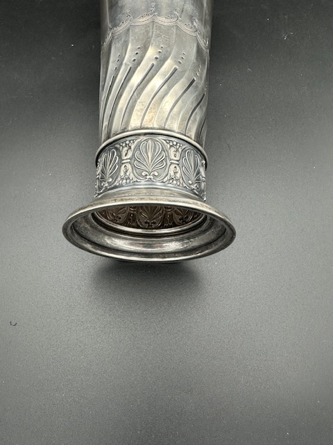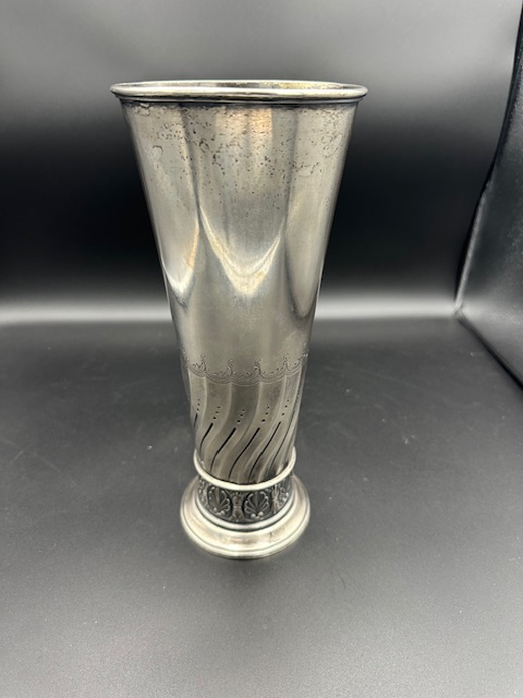 Der Freimaurer-Pokal wurde hergestellt im Jahr 1895 von der Silbermanufaktur Wilken+Söhne. Die Punze am Becherboden zeigt eine Krone mit Halbmond und eine Ziffer 104737. Der Pokal besteht aus 800er Silber. Er wiegt 490g und hat einen reinen Silberwert von 313 ,00 € .