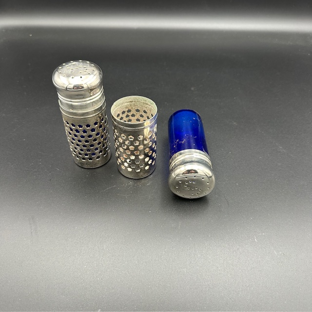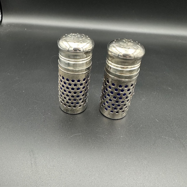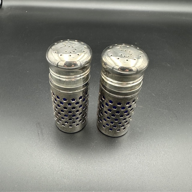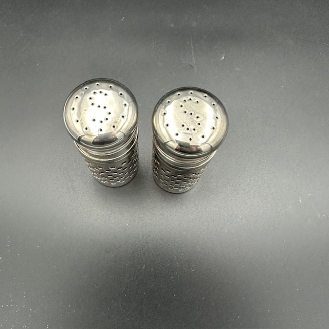 2 schöne Salzstreuer / Gewürzstreuer aus den 1940er Jahren. Die Teile sind versilbert.