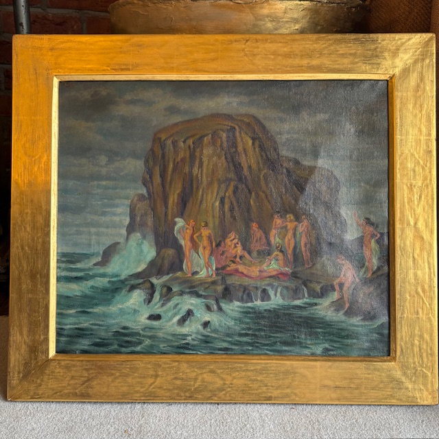 Dieses ausdrucksstarke Originalgemälde des Künstlers Herbert Rolf Schlegel zeigt eine Küstenszene mit figürlicher Darstellung. Die Komposition vereint Bewegung und Ruhe und erzeugt eine besondere, fast träumerische Atmosphäre. Das Werk wirkt sowohl dekorativ als auch erzählerisch und lädt zum längeren Betrachten ein.