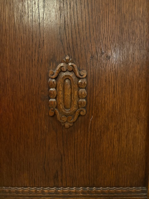 Schöner, hochwertiger Vitrinenschrank mit drei Glastüren und dekorativen Schnitzereien. Ideal zur Präsentation von Geschirr oder Deko, mit zusätzlichem Stauraum im unteren Bereich.