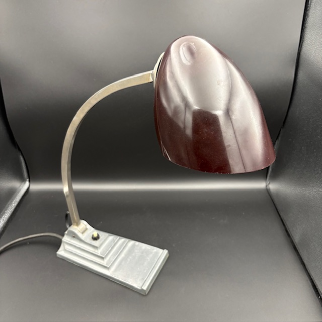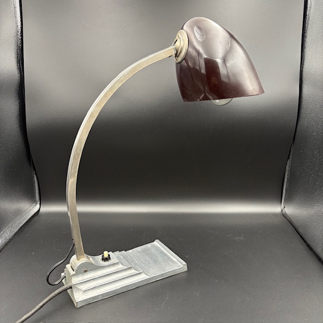 Diese stilvolle Tischlampe vereint zeitloses Design mit funktionaler Beleuchtung. Der geschwungene Lampenarm und der edle, leicht glänzende Lampenschirm verleihen ihr einen besonderen Vintage-Charme, der sich perfekt in klassische wie auch moderne Einrichtungen einfügt.