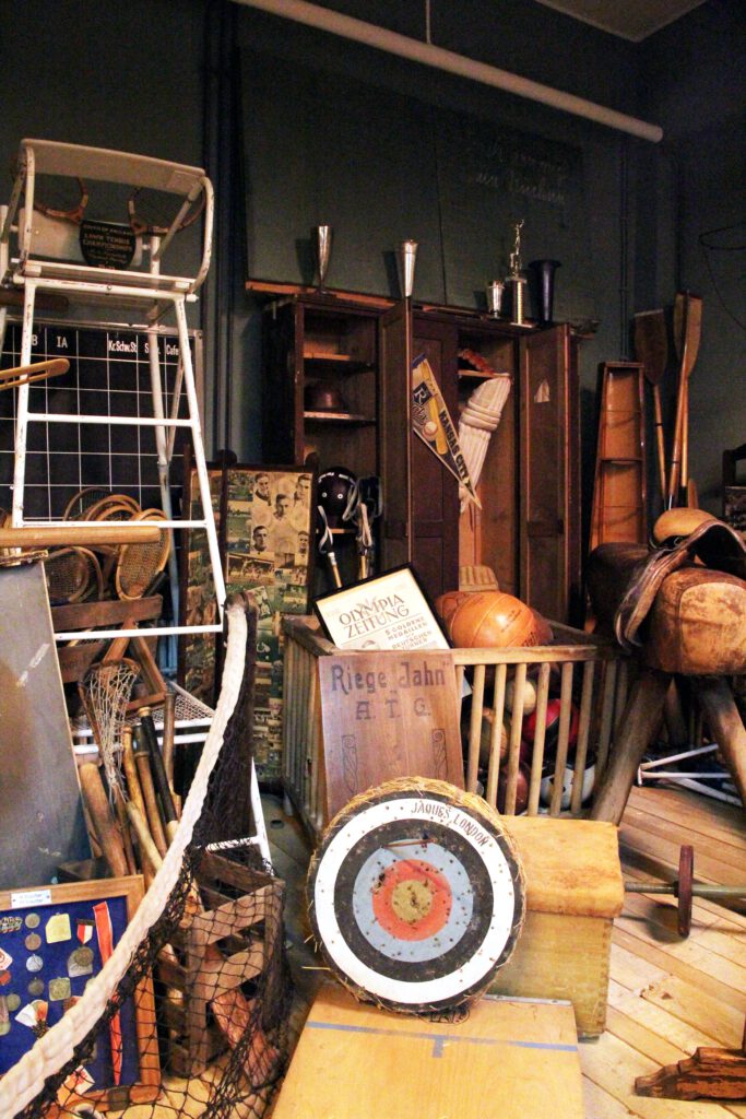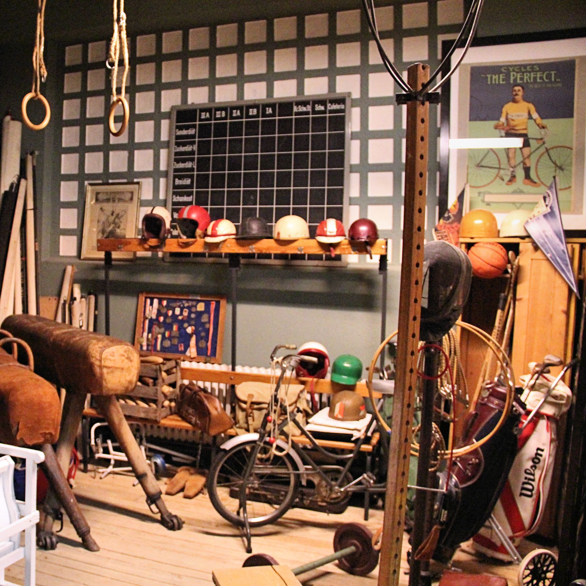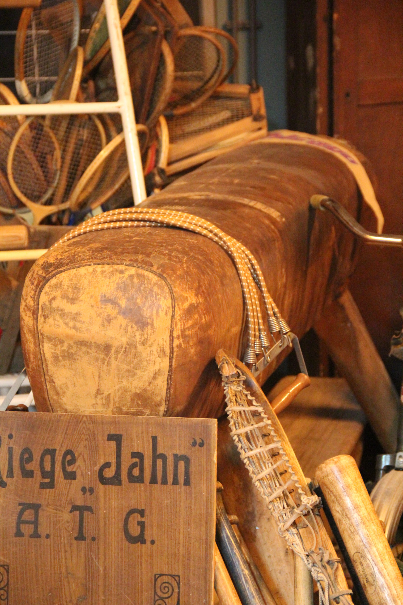 Hier nur einige Beispiele: Alte Spinde, alte Turngeräte wie Turnpferd, Turnhocker, Stufenbarren, Turnbock, Sprungkasten, Sprossenwand.